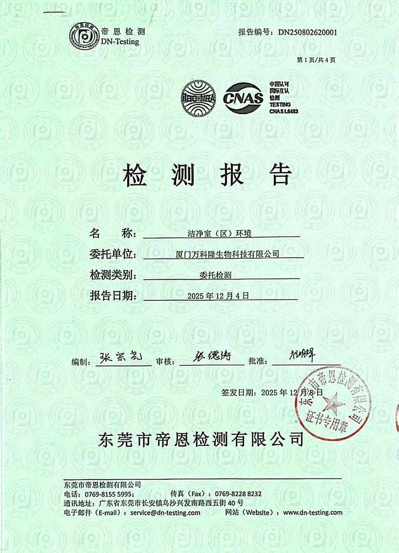 潔凈室(區(qū))環(huán)境報(bào)告